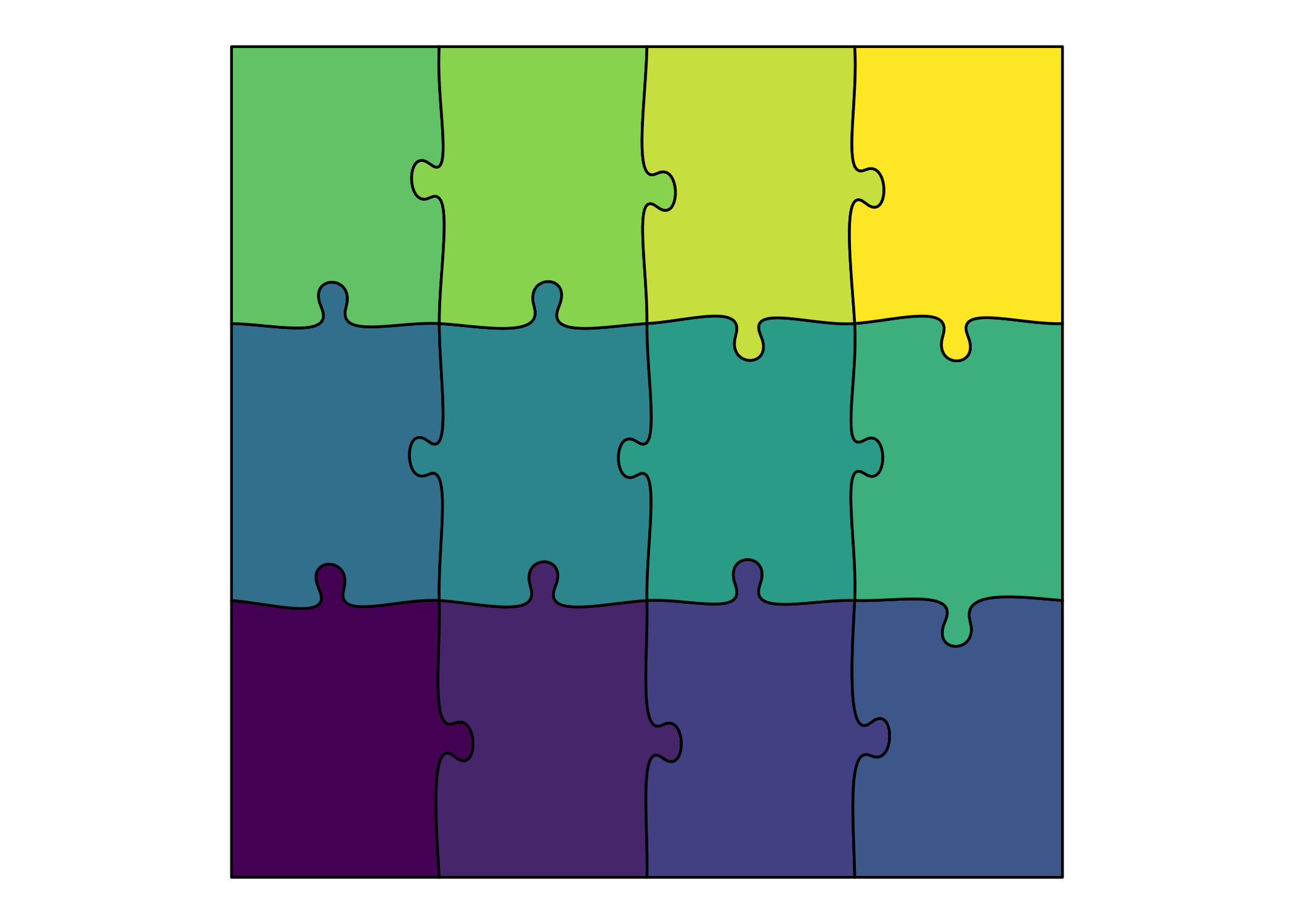 r20 <- generate_puzzle(type = "rectangular", grid = c(2, 3), size = c(200, 300), offset = 20, seed = 42, fill_palette = "viridis")